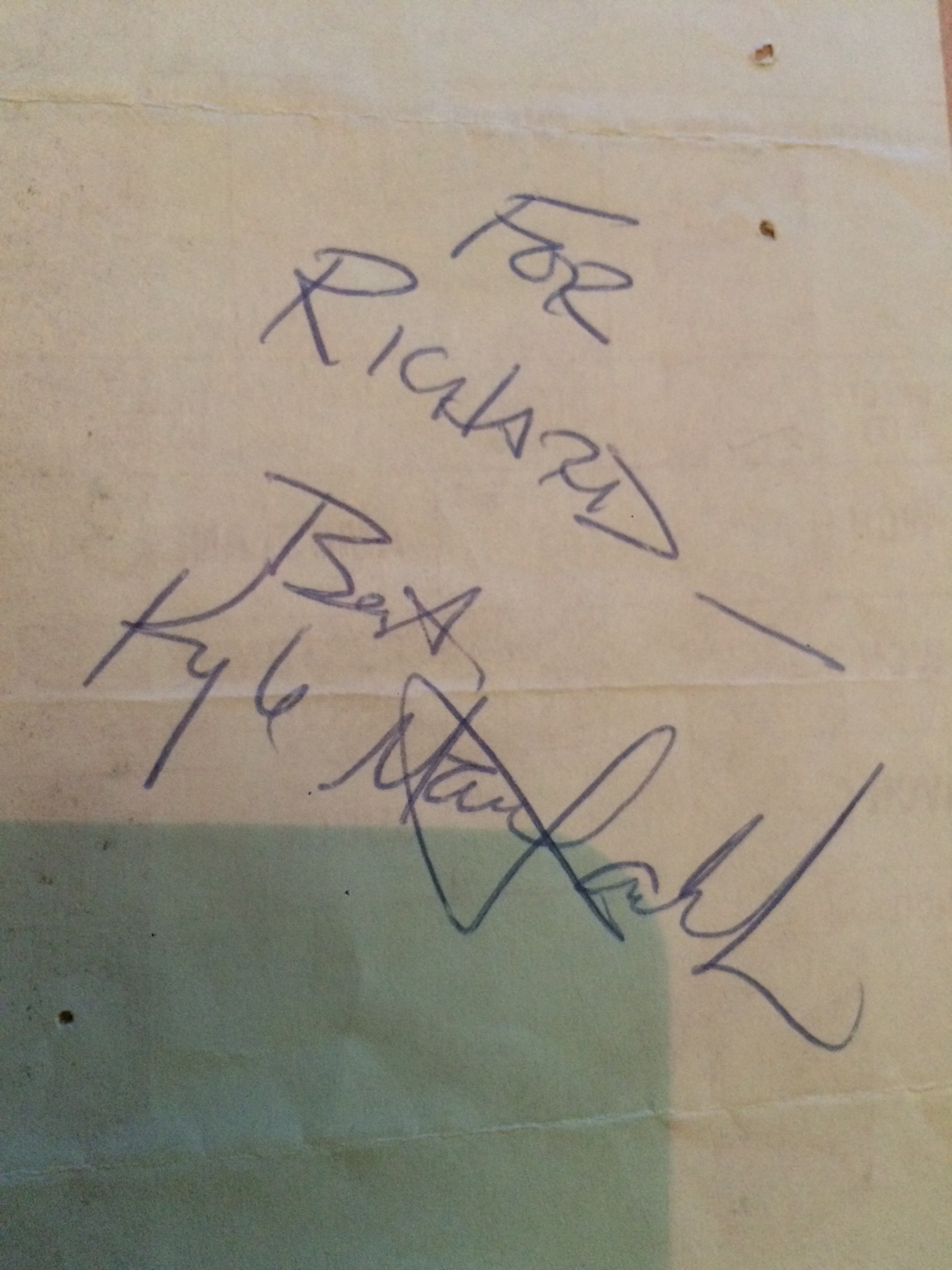 I was so lucky to meet the man himself whilst I was working at Heathrow Airport (H is for Heathrow). I was walking along with my wheelchair to the BA Shuttle Lounge at Gate 5 when I saw him strolling the corridor. He was kind enough to stop and give me his autograph and I told him what a big fan I was of his work and the show. It’s got a place in my scrapbook with Kevin Keegan, Bobby Robson, Peter Beardsley and Pele (most people I bumped into at the airport were football-related).