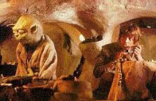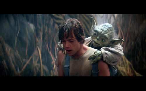 The trainee crew of the Enterprise, especially that midshipman dude, Preston I think his name is, and young Luke Skywalker being mentored by a wise old figure (Yoda and Scotty)