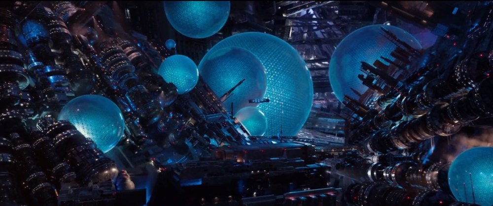 The opening then gives way to a distant planet where we are introduced to a peaceful, pearl-gathering species of aliens that bear more than a passing resemblance to the (can’t think of their names) ones from Avatar. Indeed, it’s worth pointing out that this film does remind me a great deal of James Cameron’s Dances With Wolves remake in its aesthetic. This race of happy aliens is then decimated by some calamity and we cut to our two heroes, Valerian and Laureline.