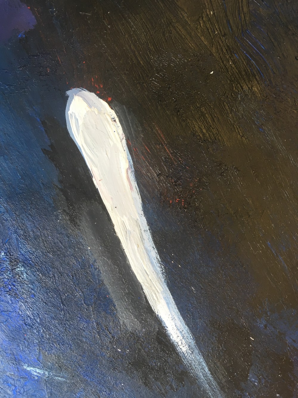 Aleks created this wonderful landscape of deep space that feels so rich and warm in the way it is put together. There are so many different layers that you get a real sense of the vast distance into which you are gazing. The brush work and subtle flashes of colour also contribute to the feeling of a three dimensional space.