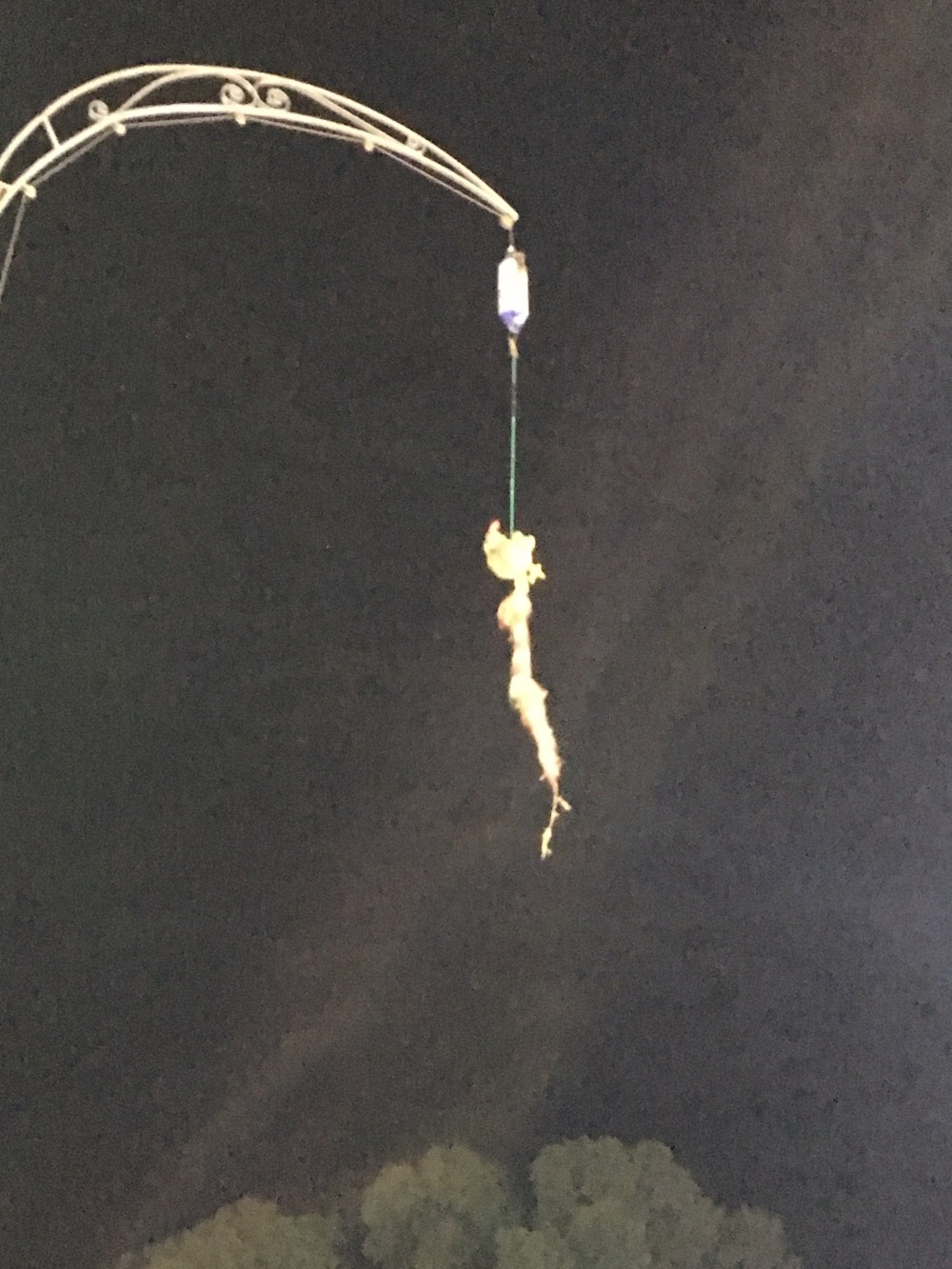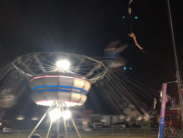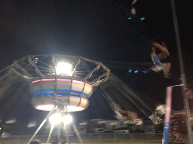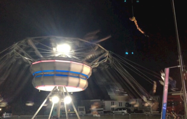 The idea is that you go on the ride in pairs, and your partner tries to shove you high enough for you to lean out of your chair and grab the chicken. There is a real knack to it that Mrs A and I were unable to master in our one attempt. This guy and his mate did a lot better.