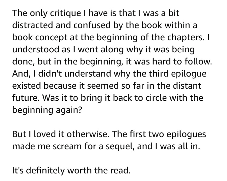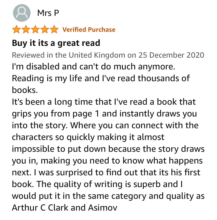 If you’ve finished the book, I’d really appreciate it if you left a review on Amazon. Of course, if you hated it, you could just tell me directly on Facebook or Twitter. If you liked it though, be sure and say something on Amazon. All your feedback is immensely valuable to me in trying to get this story noticed.