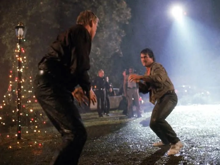 One of the quintessential ’80s cinema matchups. You can see this one coming from very early in the film and, when it arrives, it doesn’t disappoint. Choreographed by legendary jiu-jitsu and MMA pioneer Royce Gracie, the showdown between Mel Gibson’s Martin Riggs and Gary Busey’s Mr Joshua is a rain-soaked piece of brilliance. “Would you like a shot at the title?”